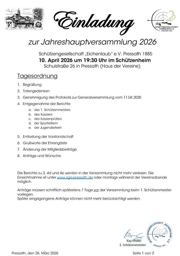 Einladung zur Jahreshauptversammlung 2026